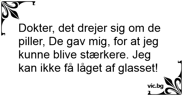 Dokter, det drejer sig om de piller, De gav mig, for at jeg kunne blive stærkere. Jeg kan ikke få låget af glasset!