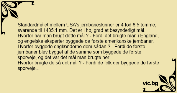 Hvorfor har man brugt dette mål ? - Fordi det brugte man i England, og engelske eksperter byggede de første amerikanske jernbaner.