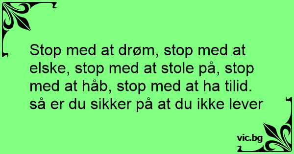 Stop med at drøm, stop med at elske, stop med at stole på, stop med at håb, stop med at ha tilid. så er du sikker på at du ikke lever