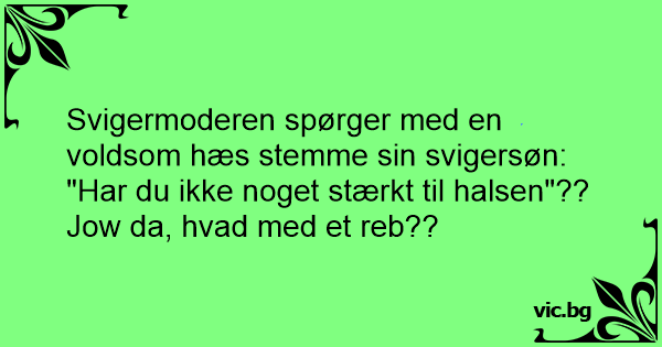 Svigermoderen spørger med en voldsom hæs stemme sin svigersøn: