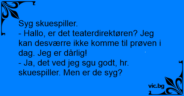 - Ja, det ved jeg sgu godt, hr. skuespiller. Men er de syg?