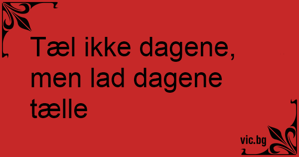 Tæl ikke dagene, men lad dagene tælle