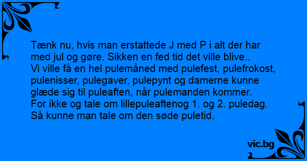 Tænk nu, hvis man erstattede J med P i alt der har med jul og gøre. Sikken en fed tid det ville blive..