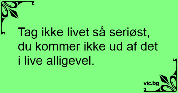 Tag ikke livet så seriøst, du kommer ikke ud af det i live alligevel.