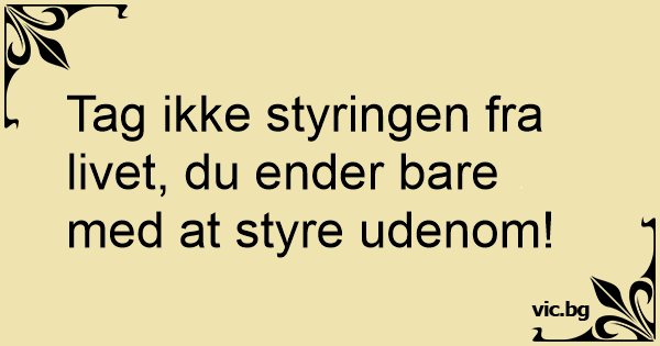 Tag ikke styringen fra livet, du ender bare med at styre udenom!