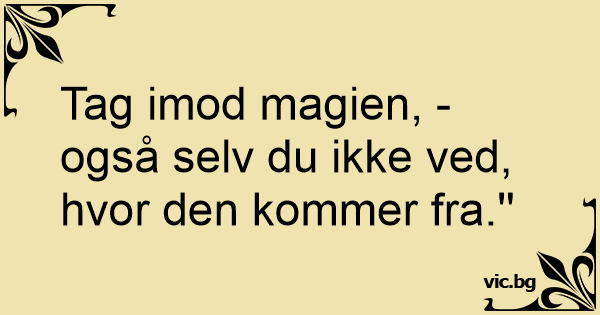 Tag imod magien, - også selv du ikke ved, hvor den kommer fra.''