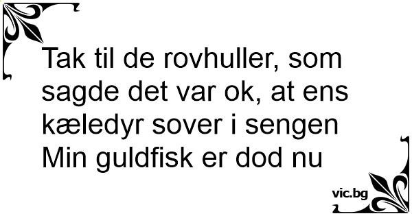 Tak til de rovhuller, som sagde det var ok, at ens kæledyr sover i sengen Min guldfisk er dod nu