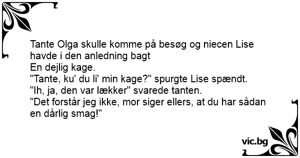 "Tante, ku' du li' min kage?" spurgte Lise spændt.