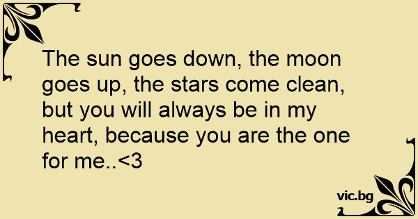 The sun goes down, the moon goes up, the stars come clean, but you will always be in my heart, because you are the one for me..<3