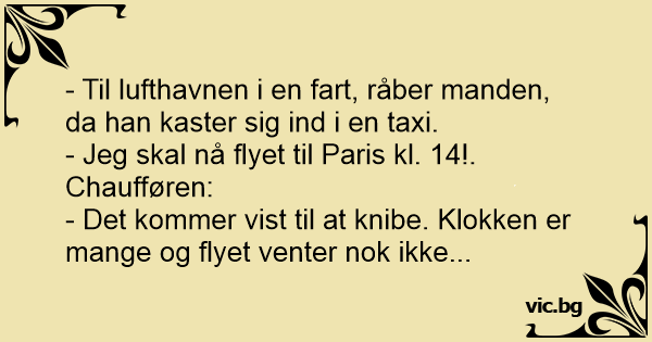 - Til lufthavnen i en fаrт, råber manden, da han kaster sig ind i en taxi.