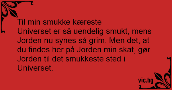 Universet er så uendelig smukt, mens Jorden nu synes så grim. Men det, at du findes her på Jorden min skat, gør Jorden til det smukkeste sted i Universet.