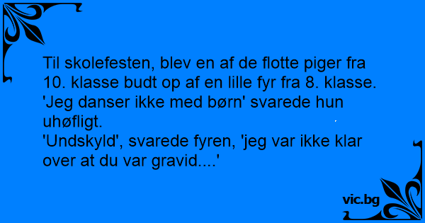 Til skolefesten, blev en af de flotte piger fra 10. klasse budt op af en lille fyr fra 8. klasse.