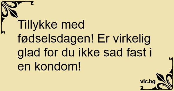 Tillykke med fødselsdagen! Er virkelig glad for du ikke sad fast i en kondom!