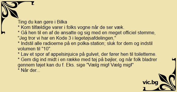 * Gem dig ind midt i en række med tøj på bøjler, og når folk bladrer gennem tøjet kan du f. Eks. sige "Vælg mig! Vælg mig!"