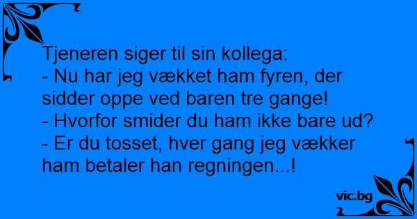 - Er du tosset, hver gang jeg vækker ham betaler han regningen...!