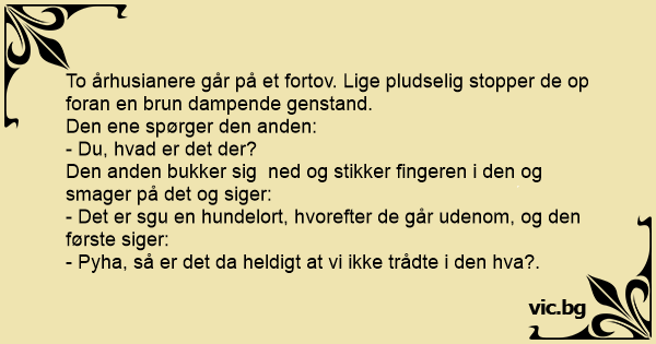 - Det er sgu en hundelort, hvorefter de går udenom, og den første siger:
