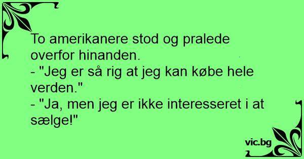 - "Jeg er så rig at jeg kan købe hele verden."