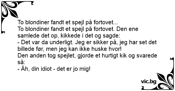 To blondiner fandt et spejl på fortovet. Den ene samlede det op, kikkede i det og sagde: