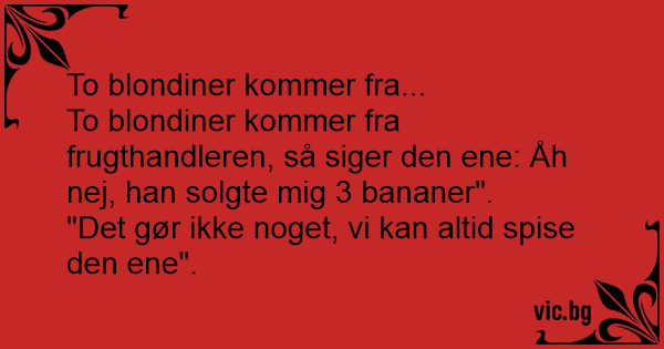 To blondiner kommer fra frugthandleren, så siger den ene: Åh nej, han solgte mig 3 bananer".