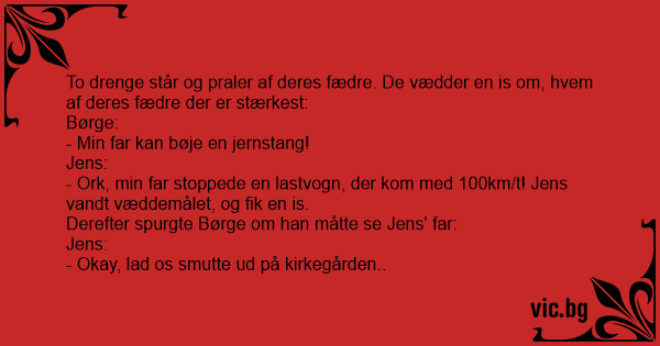 To drenge står og praler af deres fædre. De vædder en is om, hvem af deres fædre der er stærkest: