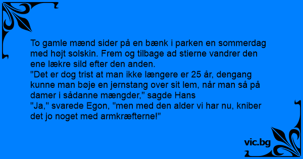 "Ja," svarede Egon, "men med den alder vi har nu, kniber det jo noget med armkræfterne!"