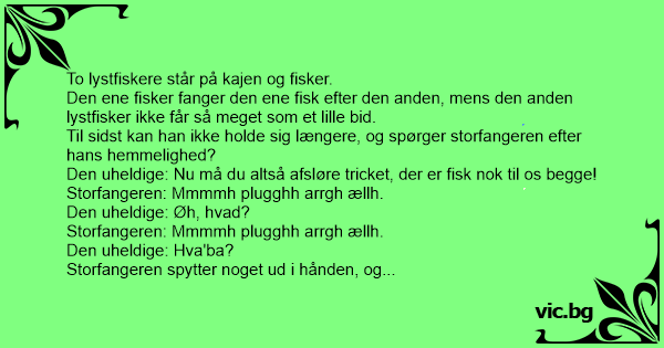 Den uheldige: Nu må du altså afsløre tricket, der er fisk nok til os begge!