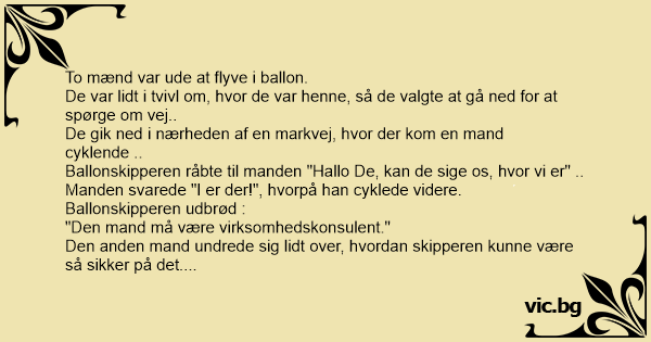 Ballonskipperen råbte til manden "Hallo De, kan de sige os, hvor vi er" ..