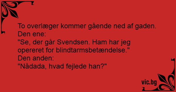 "Se, der går Svendsen. Ham har jeg opereret for blindtarmsbetændelse."