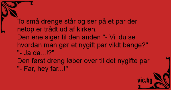 Den først dreng løber over til det nygifte par "- Far, hey far...!"