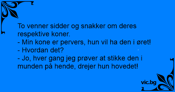 - Min kone er pervers, hun vil ha den i øret!