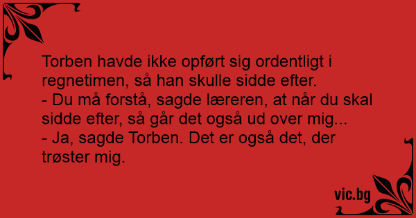- Du må forstå, sagde læreren, at når du skal sidde efter, så går det også ud over mig...