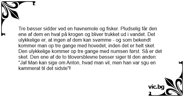 "Ja! Man kan sige om Anton, hvad man vil, men han var sgu en kammerat til det sidste"!
