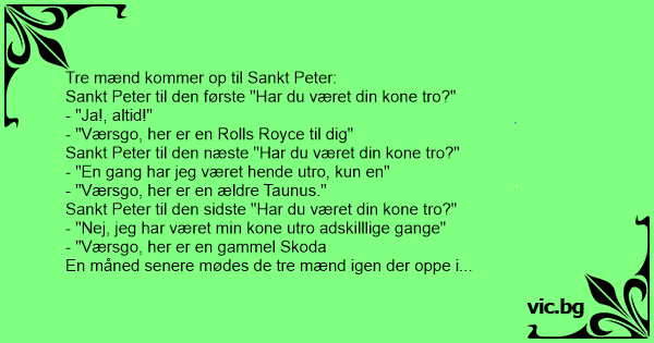 - "Jo, siger manden med Rolls'en, jeg har lige mødt min kone."