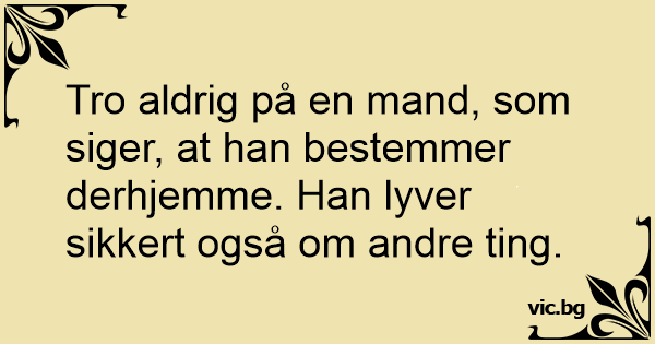 Tro aldrig på en mand, som siger, at han bestemmer derhjemme. Han lyver sikkert også om andre ting.