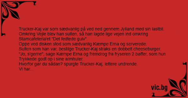 Sulten som han var, bestilge Trucker-Kaj straks en dobbelt cheeseburger.