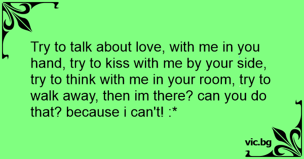 Try to talk about love, with me in you hand, try to kiss with me by your side, try to think with me in your room, try to walk away, then im there? can you do that? because i can't! :*