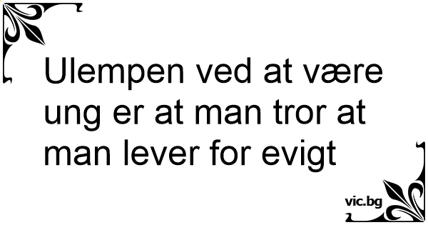 Ulempen ved at være ung er at man tror at man lever for evigt