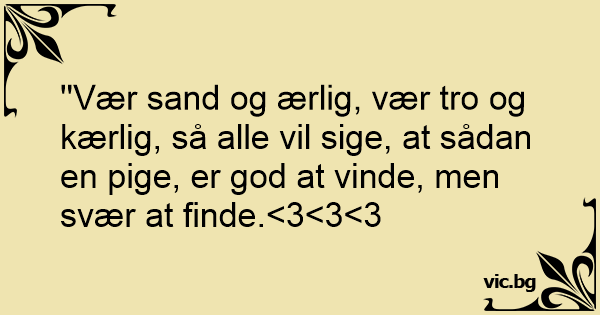 ''Vær sand og ærlig, vær tro og kærlig, så alle vil sige, at sådan en pige, er god at vinde, men svær at finde.<3<3<3