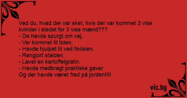 Ved du, hvad der var sket, hvis der var kommet 3 vise kvinder i stedet for 3 vise mænd???