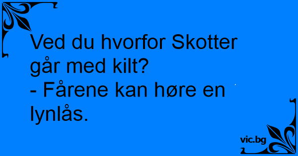 Waarom dragen Schotten een kilt? Omdat een schaap een rits al van een kilometer afstand hoort...
