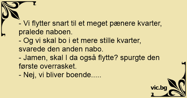 - Vi flytter snart til et meget pænere kvarter, pralede naboen.