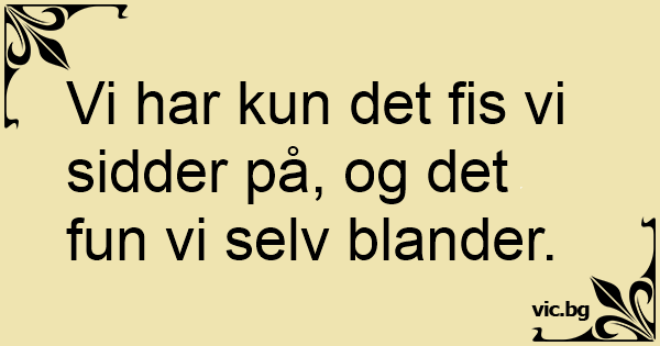 Vi har kun det fis vi sidder på, og det fun vi selv blander.