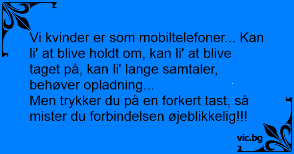 Vi kvinder er som mobiltelefoner... Kan li' at blive holdt om, kan li' at blive taget på, kan li' lange samtaler, behøver opladning...