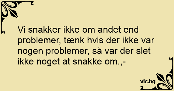 Vi snakker ikke om andet end problemer, tænk hvis der ikke var nogen problemer, så var der slет ikke noget at snakke om.,-