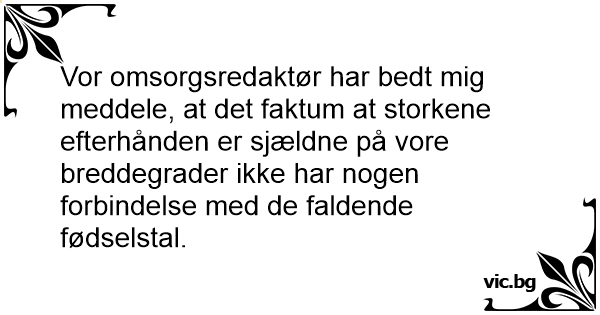 Vor omsorgsredaktør har bedt mig meddele, at det faktum at storkene efterhånden er sjældne på vore breddegrader ikke har nogen forbindelse med de faldende fødselstal.