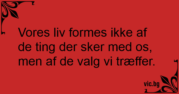 Vores liv formes ikke af de ting der sker med os, men af de valg vi træffer.