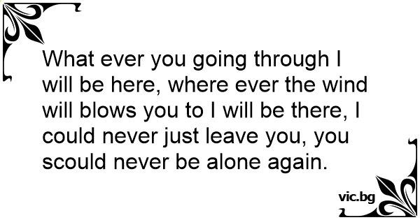 What ever you going through I will be here, where ever the wind will blows you to I will be there, I could never just leave you, you scould never be alone again.