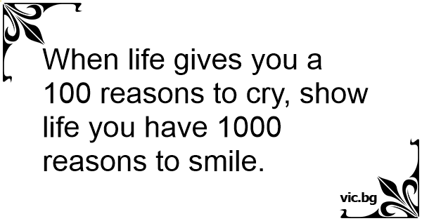 When life gives you a 100 reasons to cry, show life you have 1000 reasons to smile.
