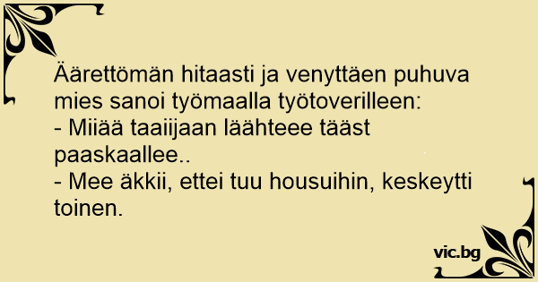 Äärettömän hitaasti ja venyttäen puhuva mies sanoi työmaalla työtoverilleen:
