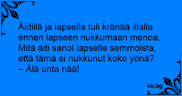 Äidillä ja lapsella tuli kränää illalla ennen lapseen nukkumaan menoa. Mitä äiti sanoi lapselle semmoista, että tämä ei nukkunut koko yönä?